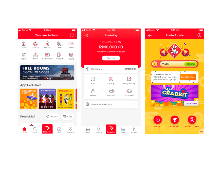 Presto is a leading social commerce platform in Malaysia that integrates eWallet functionality with a wide range of lifestyle services in a single mobile app. I joined the Presto team during the pivotal stage of the project — overhaul the mobile app.
