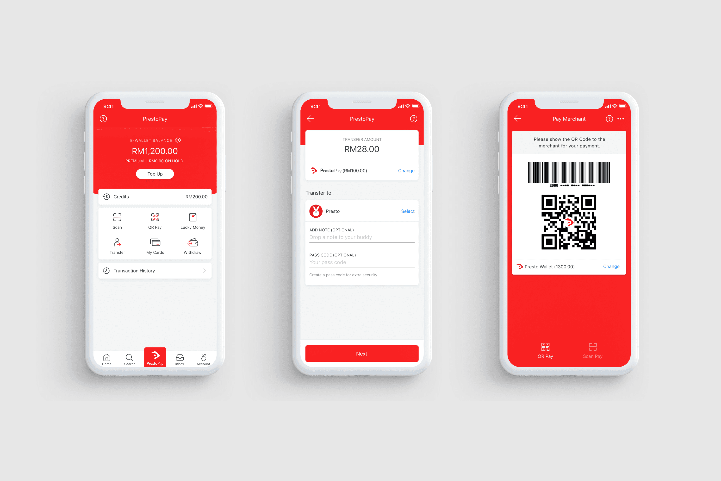 PrestoPay, Money Transfer, and QR Payment face-lift, for better user experience, patterns, and interface.